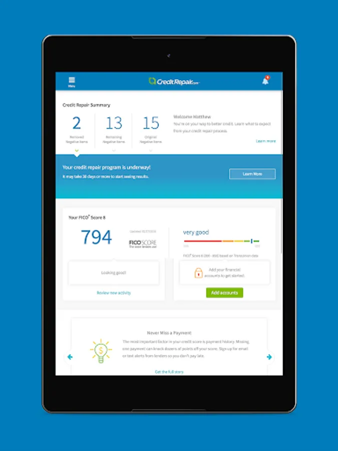 Follow your credit repair progress with the CreditRepair.com Android app.