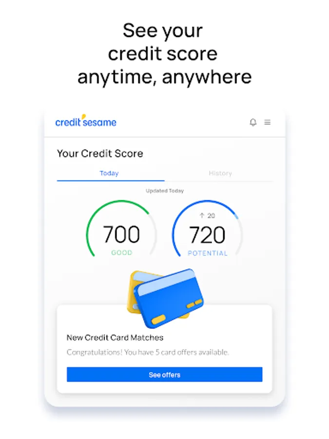 Credit Sesame is a free credit score management app. We help you access, understand, and protect your credit all in one place.