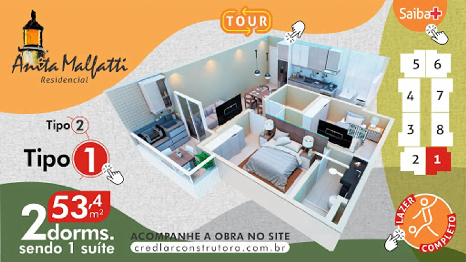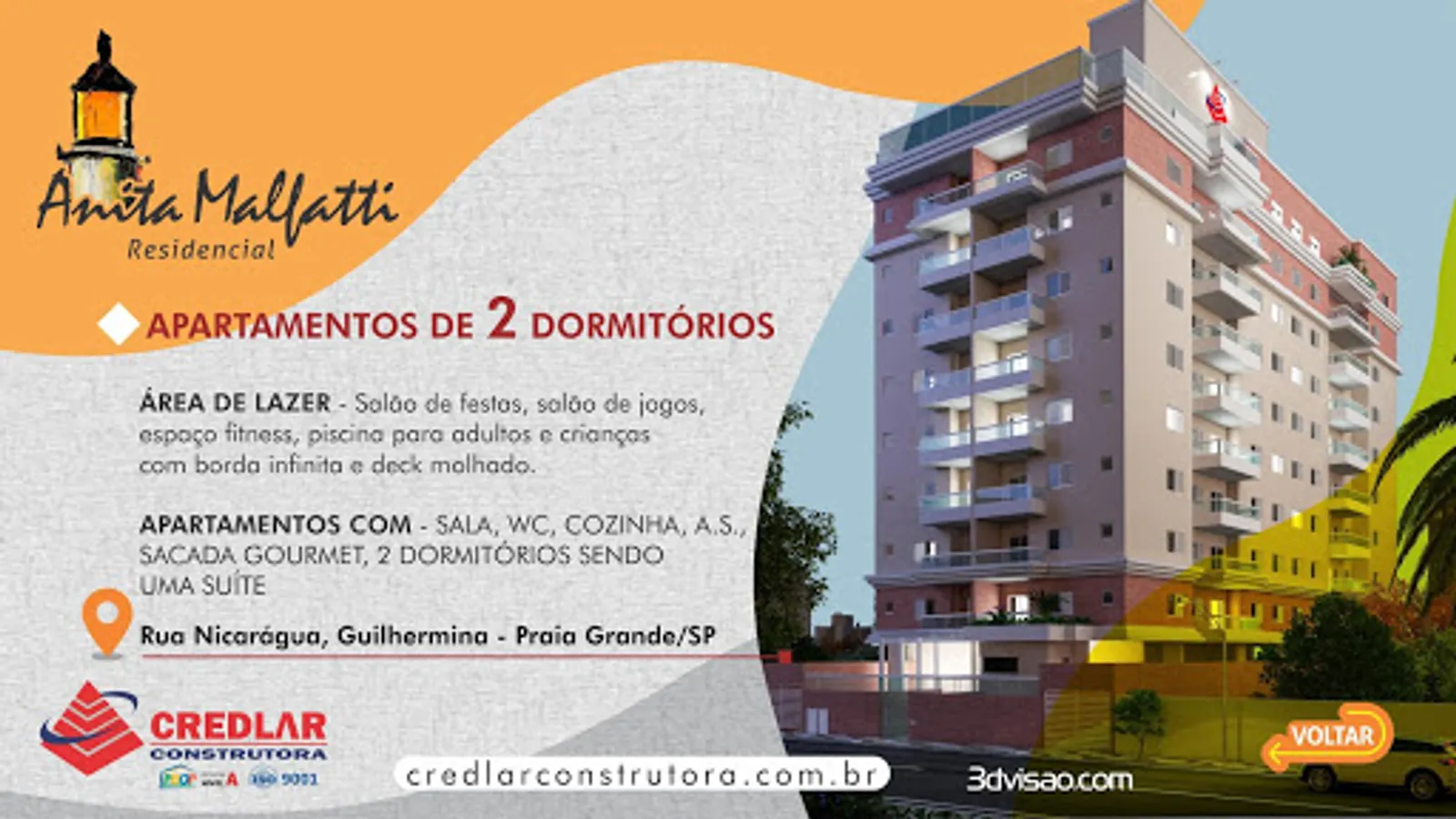 Residencial Anita Malfatti - Guilhermina - Praia Grande. 2 bedroom apartments with a suite, gourmet balcony and a private area of 53.4 or 54.8 m² and a parking space.