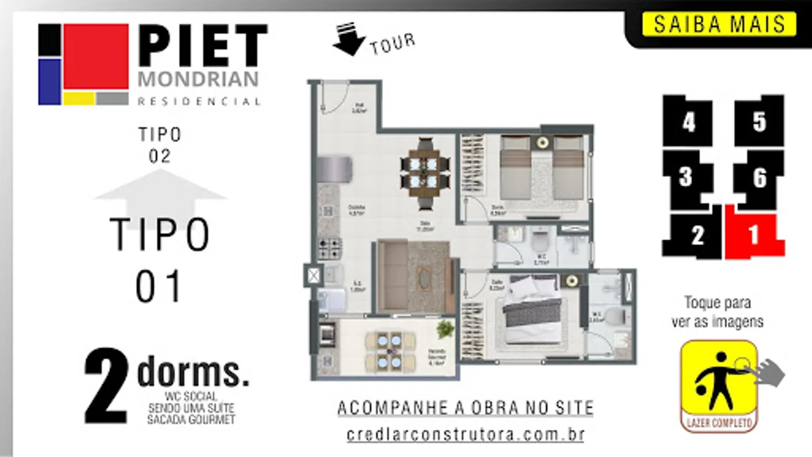 2 bedroom apartment with 1 suite, 02 bathrooms, kitchen integrated to the service area, gourmet balcony with access from the service area.