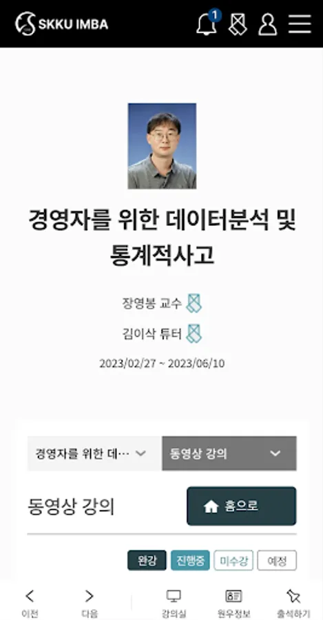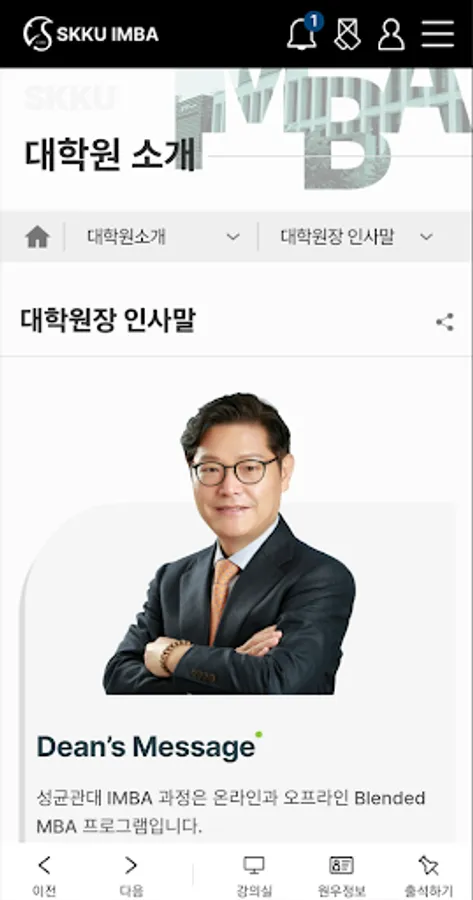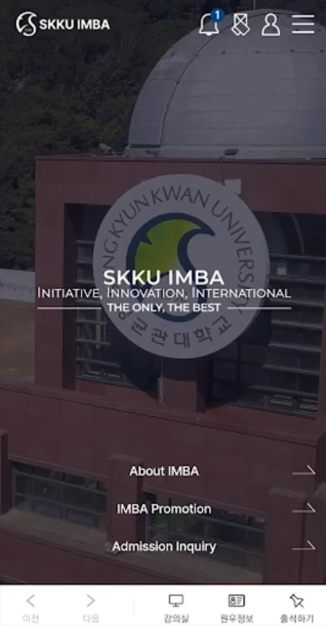 Sungkyunkwan University School of Management MBA IMBA has introduced postgraduate courses, course descriptions, academic calendar, check, Wonwoo information access, and a possible application of the river course. It easy to use anytime, anywhere learning can be very helpful in the development of support services in the online course.