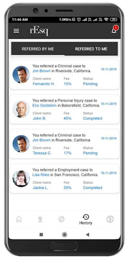 3. rEsq promotes business. Both parties involved in a referral will benefit. The referring party does not forego a referral fee which is a routine occurrence. Now you can locate advocates and secure payments for referrals effortlessly. On the receiving end, the referred party can retain a new client unknown to them otherwise.
