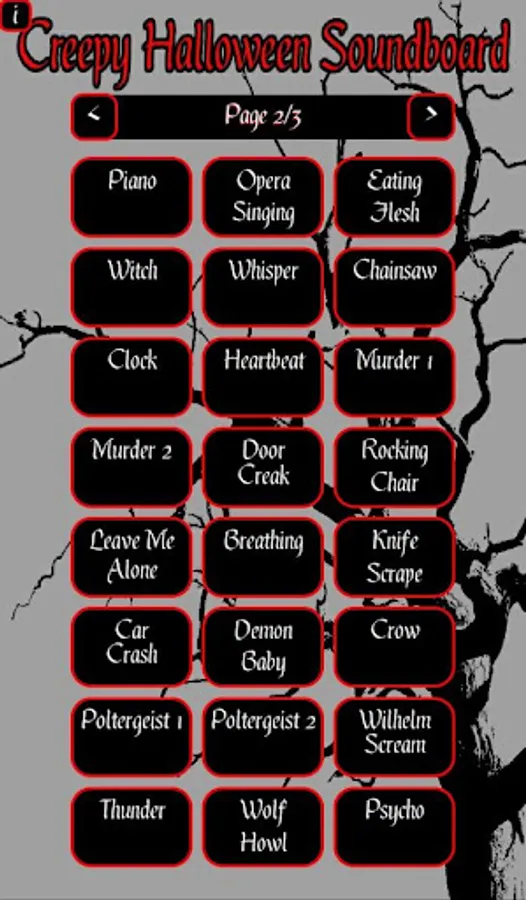 A no-nonsense horror/halloween soundboard. Featuring creepy, horrific, scary, spooky, gruesome sound effects. Just select a sound and hear the bone-chilling audio. Great for pranks, telling scary stories, and entertainment on Halloween.