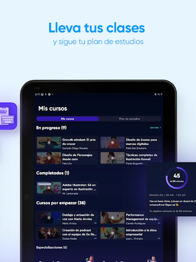 The best app to learn online from your cell phone! Download it for free and take your first online courses for free. Access all your virtual courses and develop new skills that will boost your career or business.