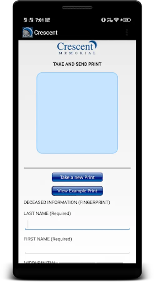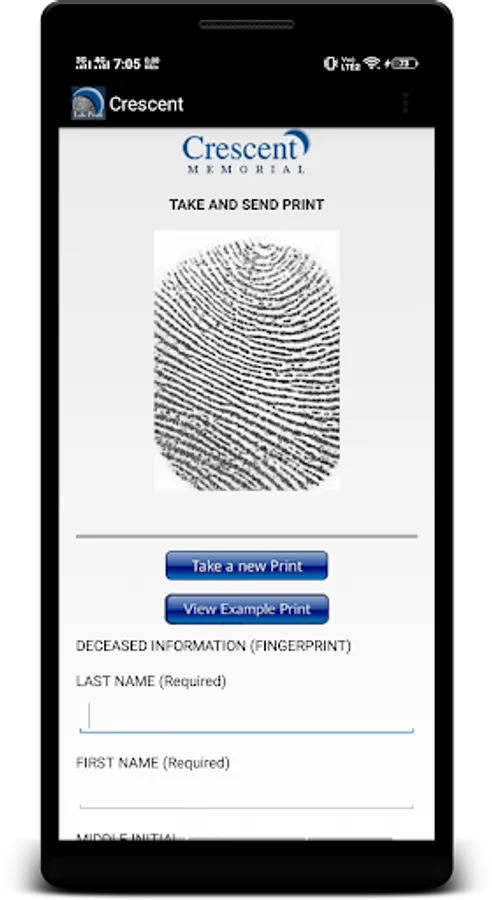 The Crescent Memorial Automated Fingerprint Scanning Solution allows you to take a print from your Android phone using a scanner that attaches to your phone. So this option allows you to use a scanner rather than the phone camera and this allows you to take a fingerprint for your use or to send to Crescent for Life Print Memorial Keepsakes.