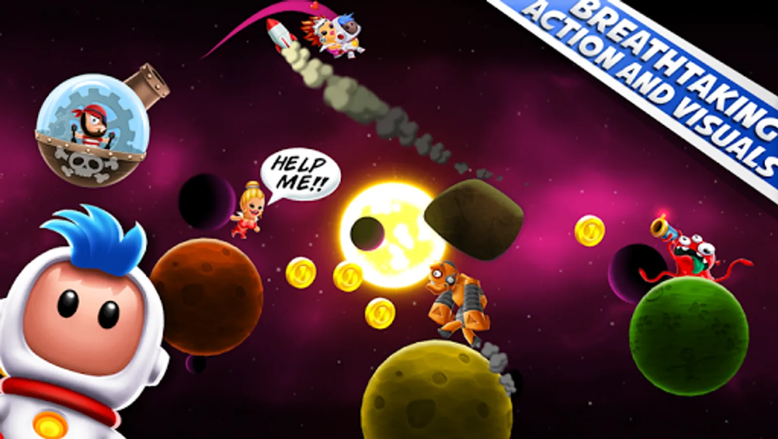 Fun powerups, such as the Space Car, or the Hammer, will help you get through even the most dangerous of planetary situations.