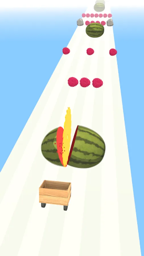 Drag your finger left to right to avoid the obstacles and cut the all fruits on your path!