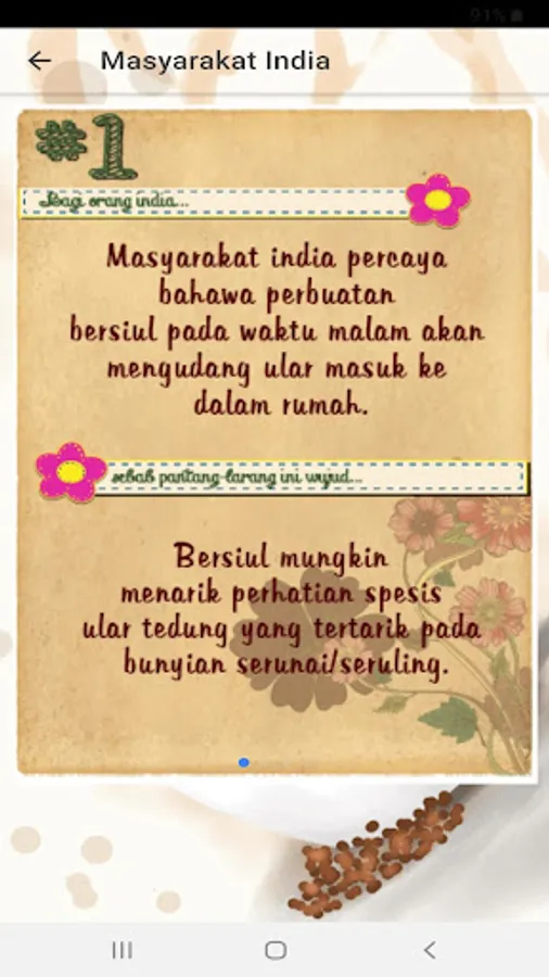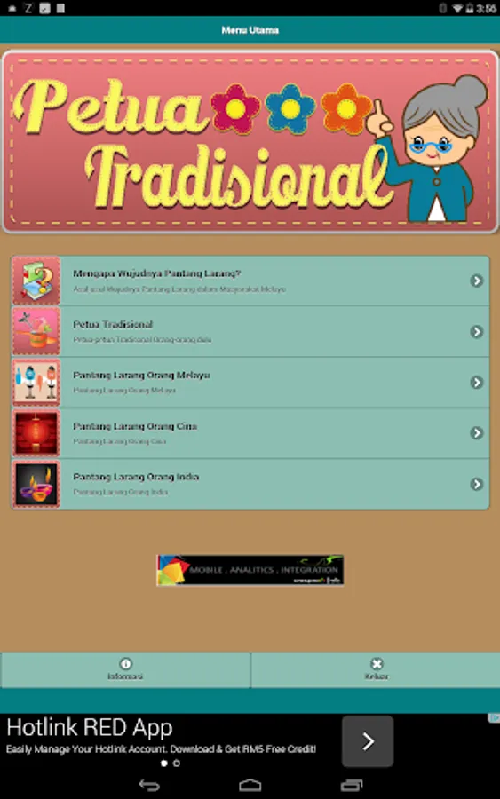 The application displays the old rules, taboos various communities (such as Malay, Chinese, Indian and other ethnic) and efficacy of herbal options.