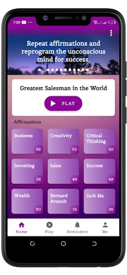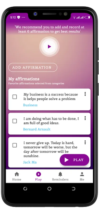 • Morning and evening reminders to play your affirmations