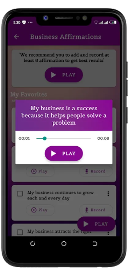 • Background play for your positive affirmations