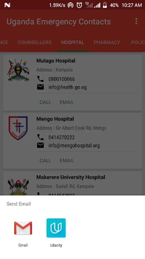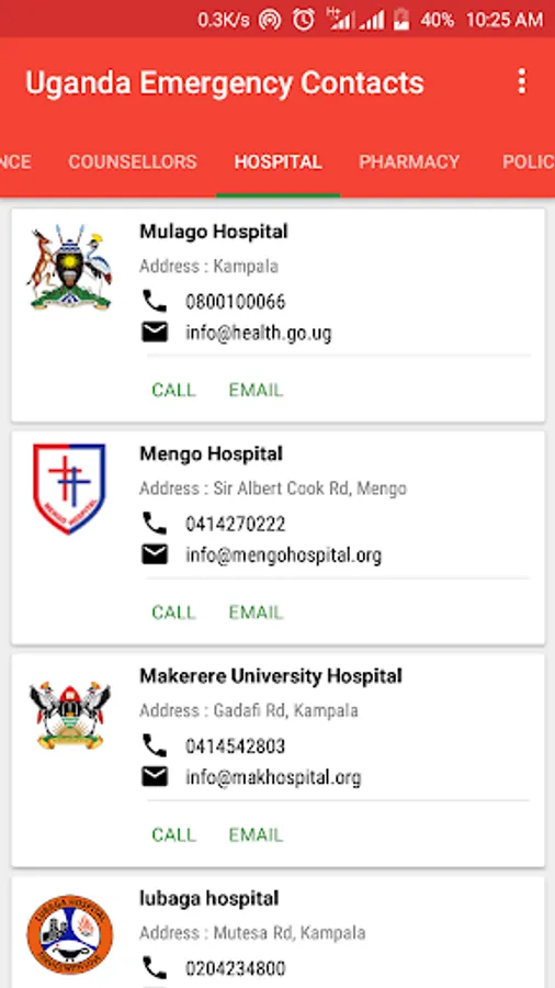 This app is equipped with hundreds of must have emergency contacts that u will need when in any panic, emergency or unplanned situation when in Uganda.