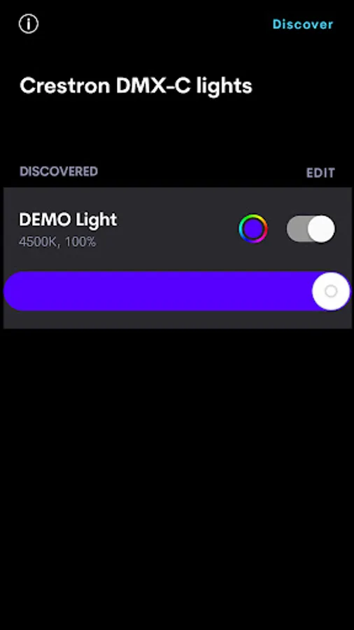 This app is used to control Crestron light fixture demo kits which use the Lumenetix/ERP Araya LED light engines via Bluetooth on Android devices as a complete proxy for its current light fixture interface. This app allows users to change the color of the light, as well as the intensity. Crestron has developed an app that allows professional lighting specifiers and designers to test and sample DMX-C Bluetooth to enable demo fixtures.