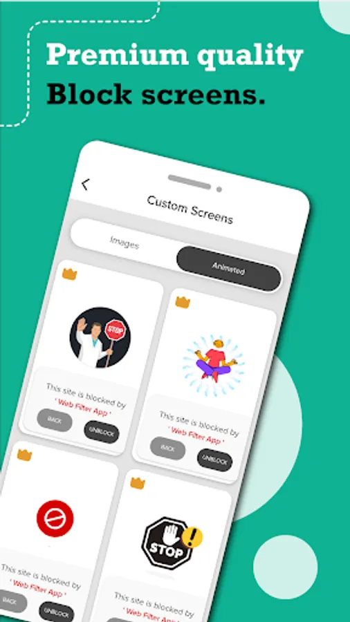 • BlockSite and k9 web protection comes with custom block screen so you can customise your block screens with variety of blocked screen images and animated screens.