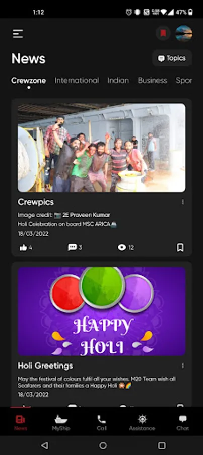 Crewmates is a welfare app developed by the M20 Marine team for the wellbeing of Seafarers and their families. App connects the seafarers around the world with their families, provides the latest news and other updates for Seafarers and link the Seafarers with the various onshore support organizations for safe and stress-free sailing. This app is offered for free and includes the following features.