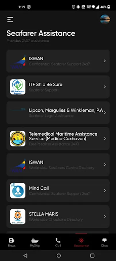 - Contact details from the International Transport Workers Federation and other Seafarer assistance organizations.
