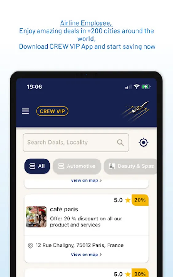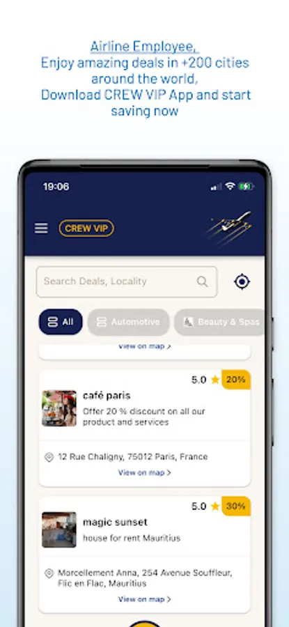 Discover a world of amazing deals and discounts on restaurants, spas, gyms, car rentals, grocery shopping, wellness, fashion brands and so much more, across different cities worldwide, when susbcribing to our new app especially designed for airline staff. Start saving now!