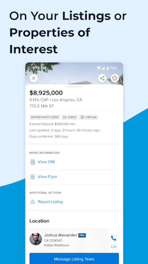 - Easily access offering memorandums or flyers for every listing and browse through photos, videos, and floor plans.