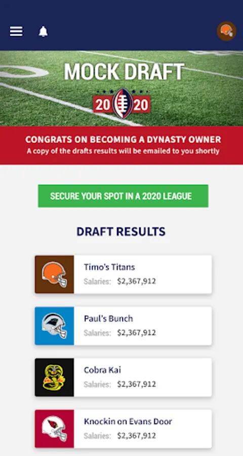 Dynasty Owner is the ONLY patented fantasy sports game using actual NFL player salaries and contracts. You manage your team from all levels: Owner to General Manager to Coach.