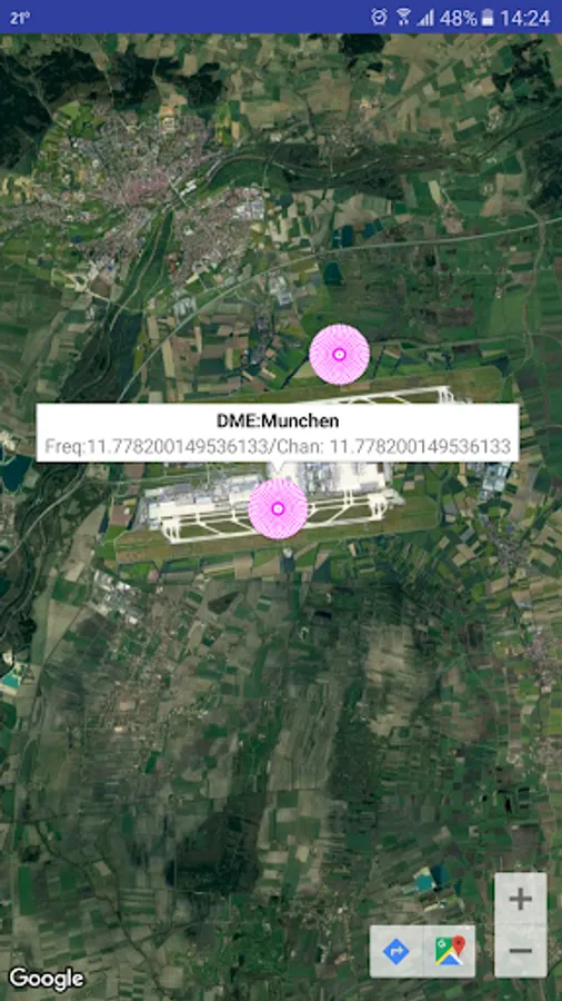 Then you can also click the buttons on the bottom to get a link to skyvector.com public data, or use the Google map that will display VOR, DMEs, etc. for your use, just click the marker to get more details.