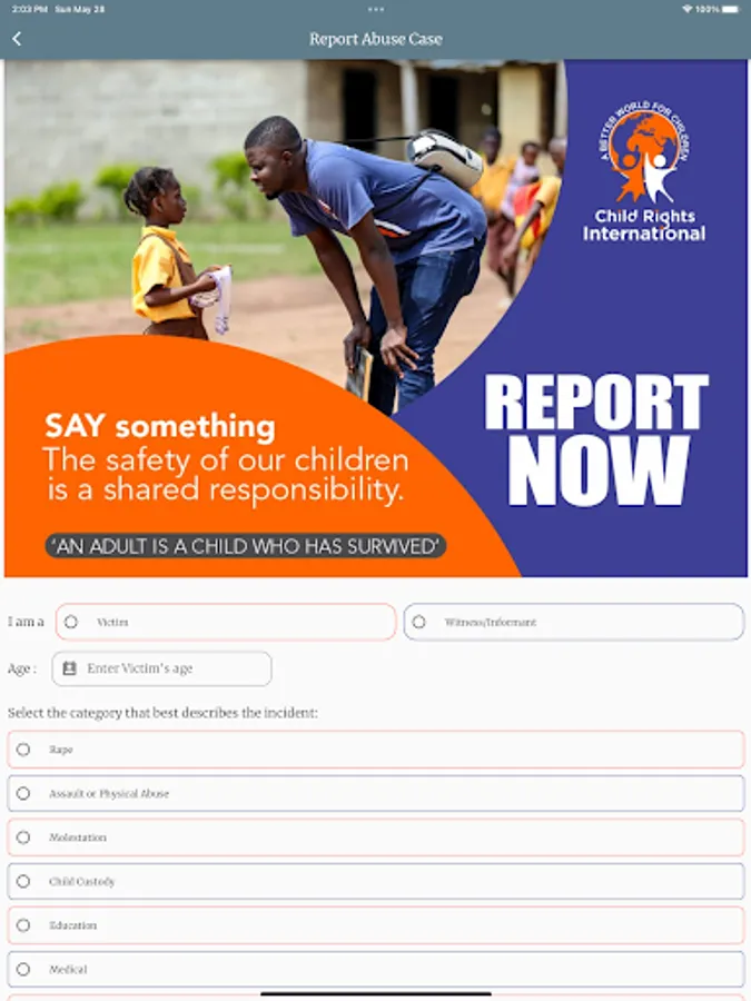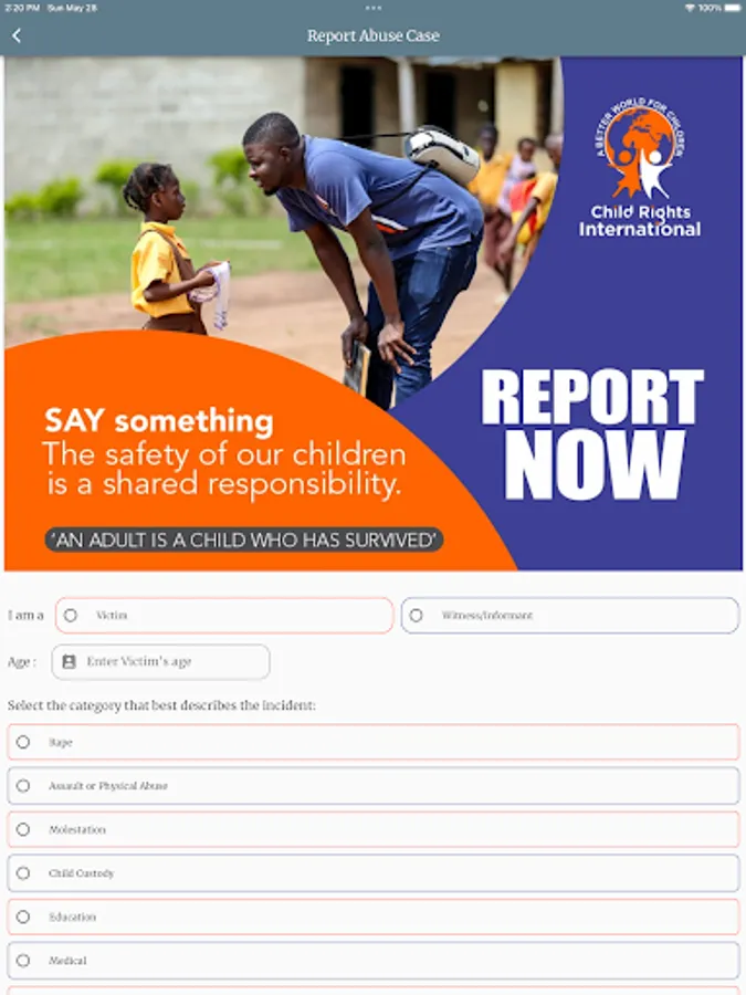 Safekid is a platform created to aid Ghanaians in reporting of abuses cases and other issues regarding our children. See something, say something...Together, we can safeguard our children's future.