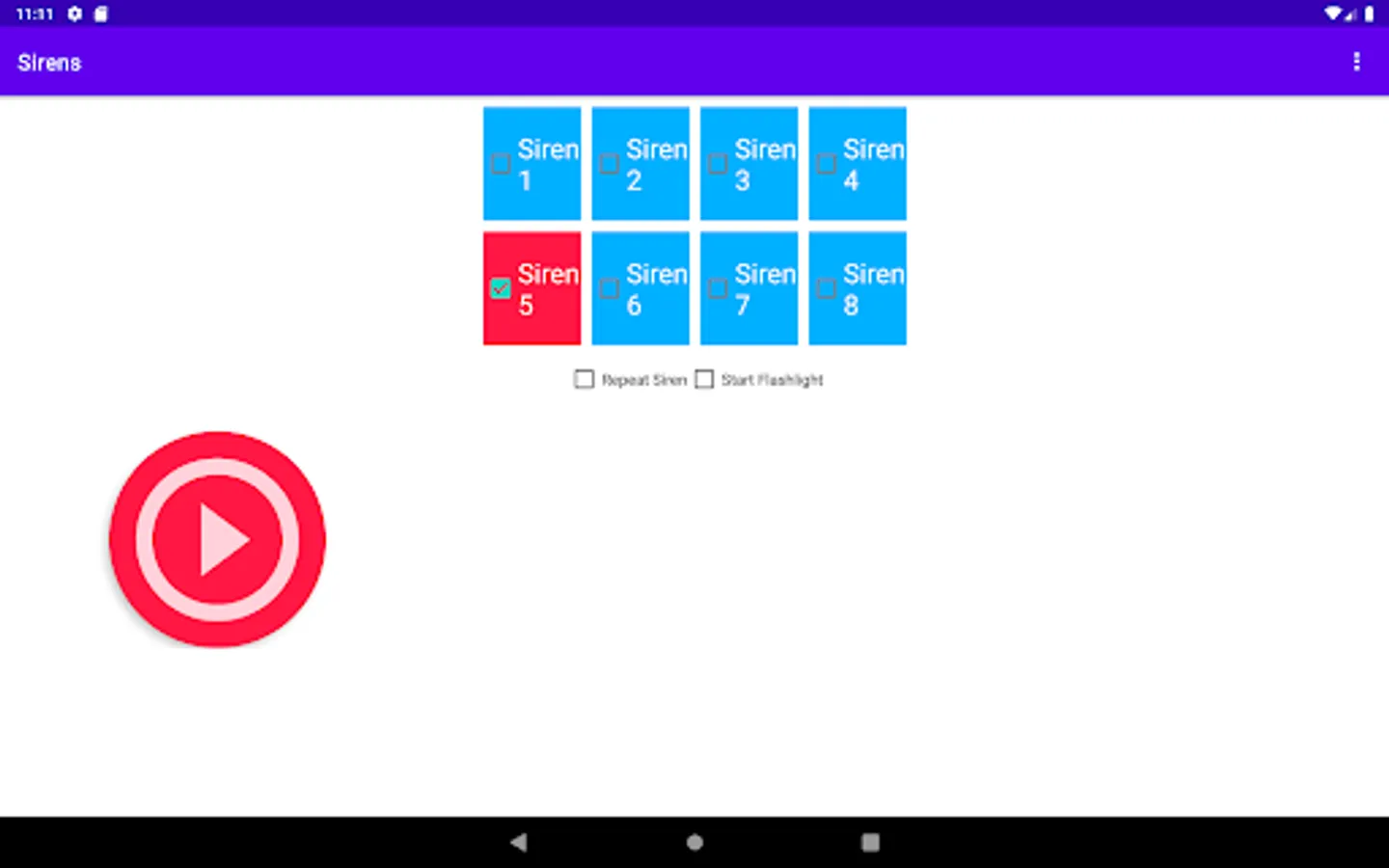 It contains eight sirens including the ones described above, with repeating sound and flashlight capabilities.