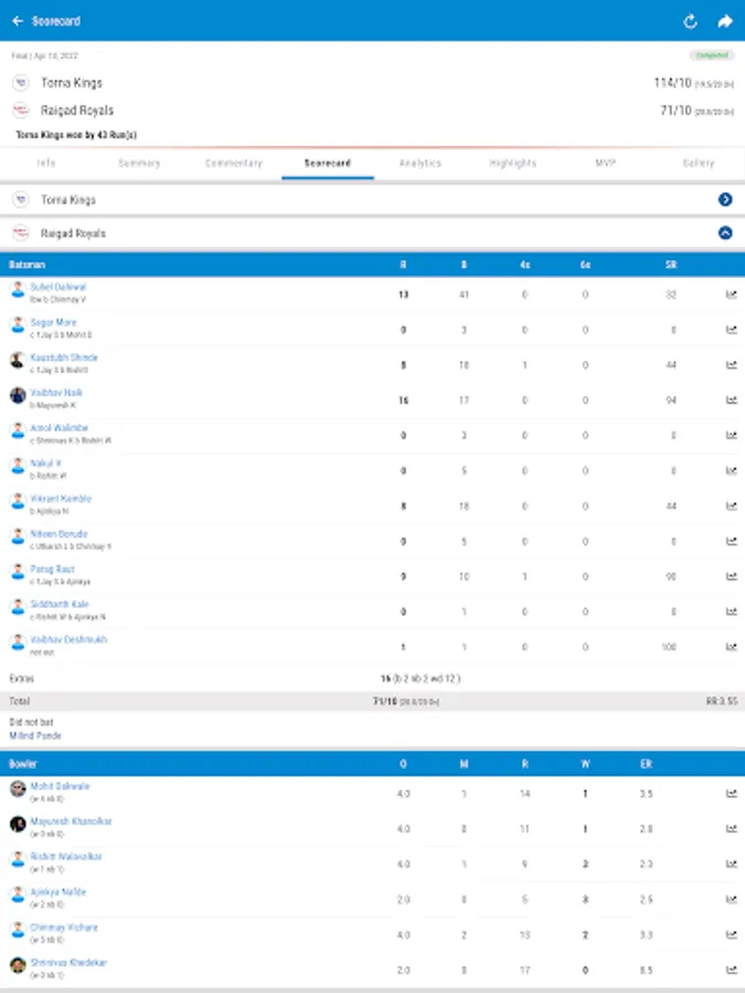 Dedicated app for viewing scores and player statistics and live scoring