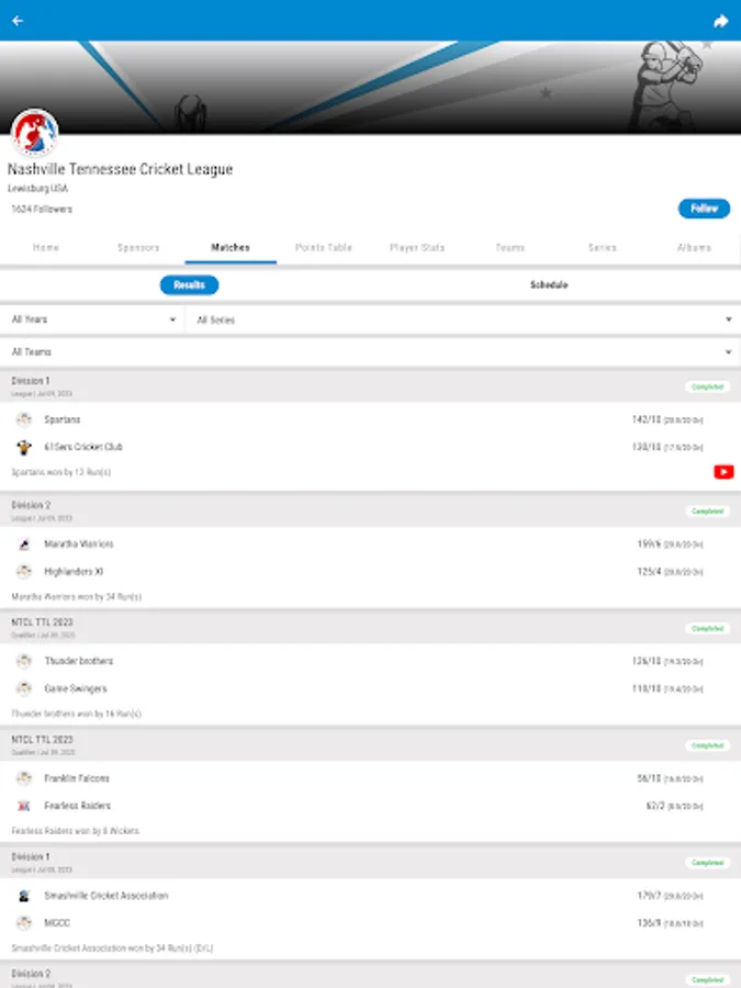 NTCL was founded in 2018 with a sole purpose of providing a platform to promote the sport of cricket in Nashville and surrounding regions. NTCL app provides access to statistics of every player who has been registered with the league. This also provides easy access to watch live scores for every single game organized and played within NTCL and all the partnered tournaments by NTCL including Nashville Open.