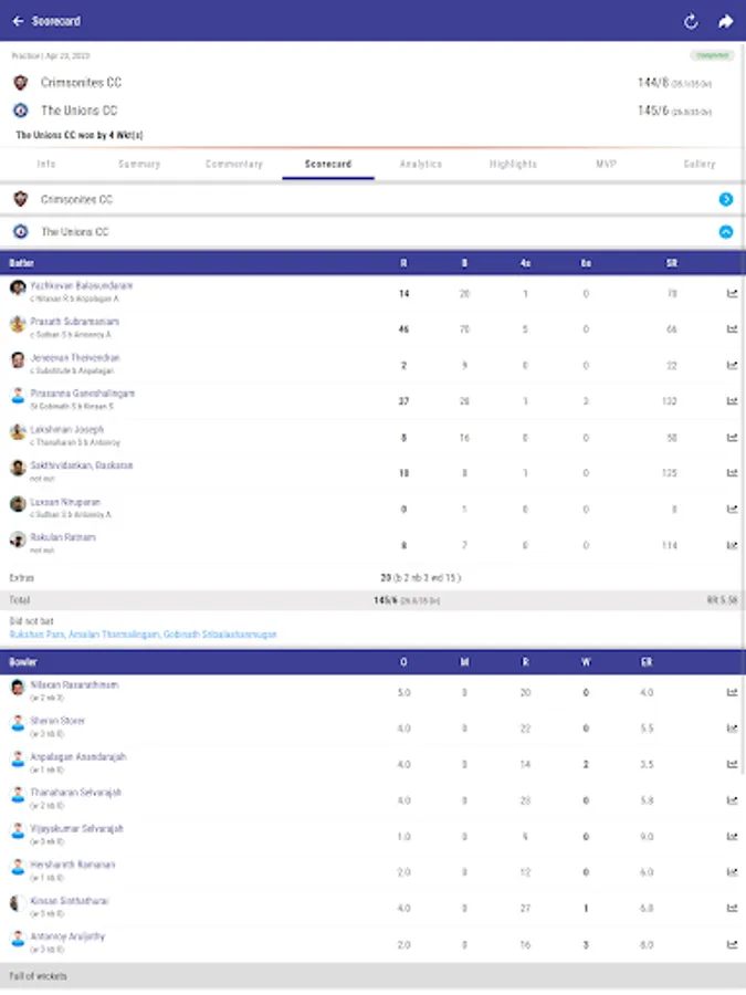 The unions cricket app is a social platform provide all the features that one can ever imagine. This App is designed to manage the live scoring for old students cricket matches easily and efficiently.