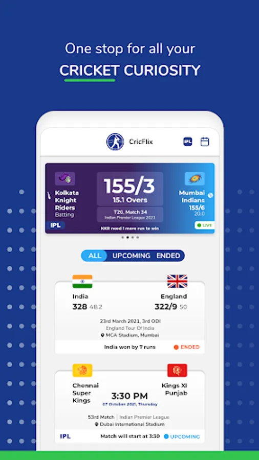 Timely notifications on the upcoming, ongoing, and ended matches so that you never miss an update!