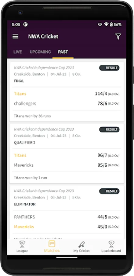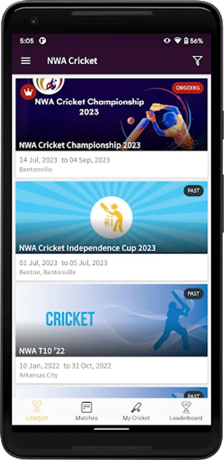 Players, organizers and followers of this Cricket tournament can follow the LIVE scores, Leader board, Boundary Tracker, Points Table and much more using this app. Scores are published LIVE ball to ball to this app. Enjoy!