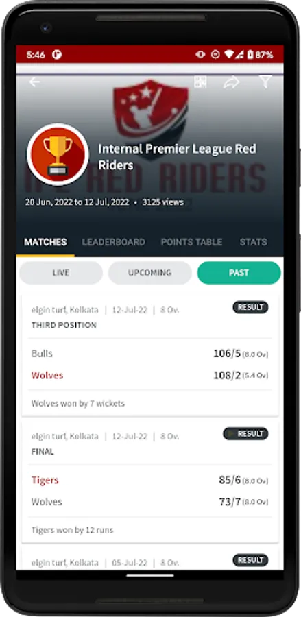 Players, organizers and followers of this Cricket tournament can follow the LIVE scores, Leader board, Boundary Tracker, Points Table and much more using this app. Scores are published LIVE ball to ball to this app. Enjoy!