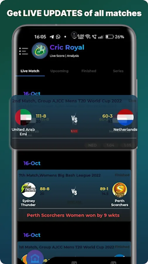 Cricket Score App, Fastest Live Cricket Score App loved by millions of cricket lovers.