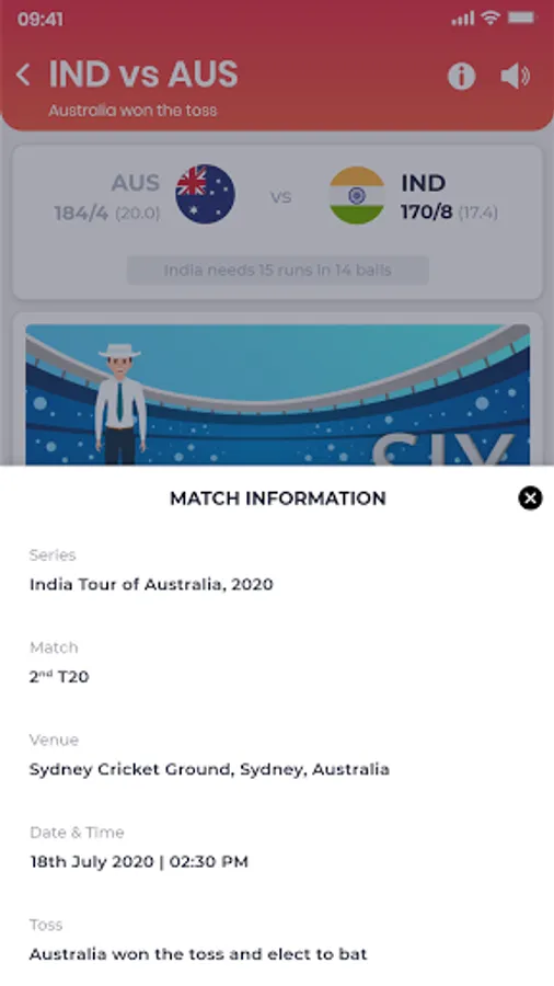 Universal CricketLine also provides FULL SCORECARD to get complete detail of players runs, wickets ,etc.