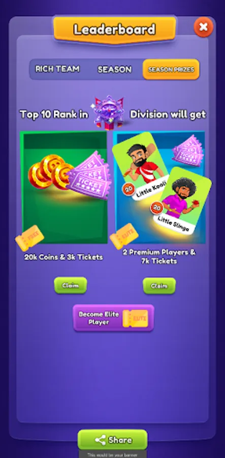 β’ Top the season leaderboard to win season prizes