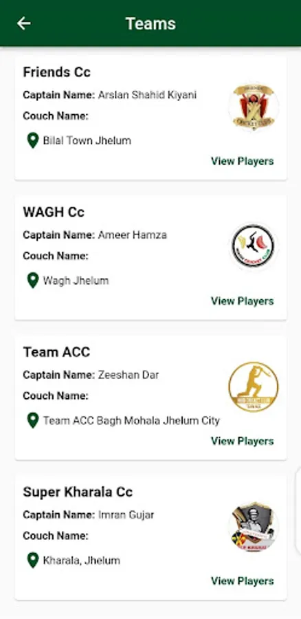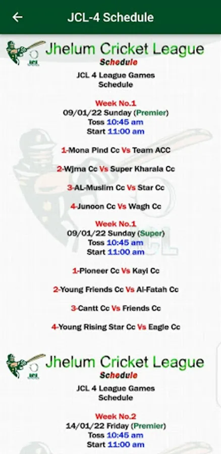 An application for cricket tournaments for Jhelum Cricket League where users can view match schedules and view the live match status plus view teams and players.