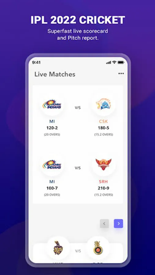 IPL 2022 - Live Score app provide upcoming matches, cricket score and update.