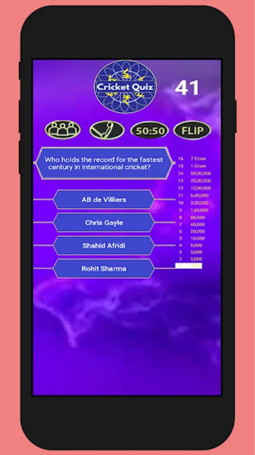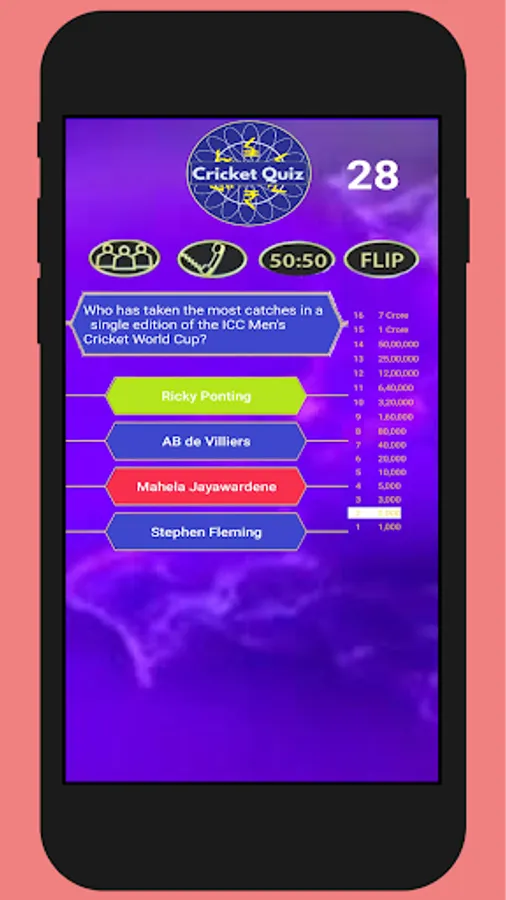 Cricket Quiz Game in KBC Crorepati/ Millionaire style. Including IPL