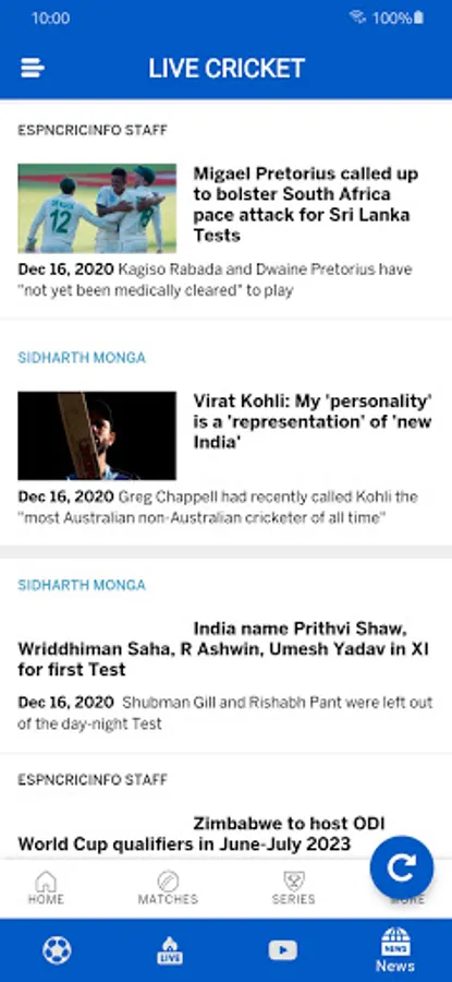 Extensive coverage of all international crickets, IPL, BBL, CPL, Natwest T20 explosions and other large cricket tournaments worldwide. Tons of domestic cricket coverage too.