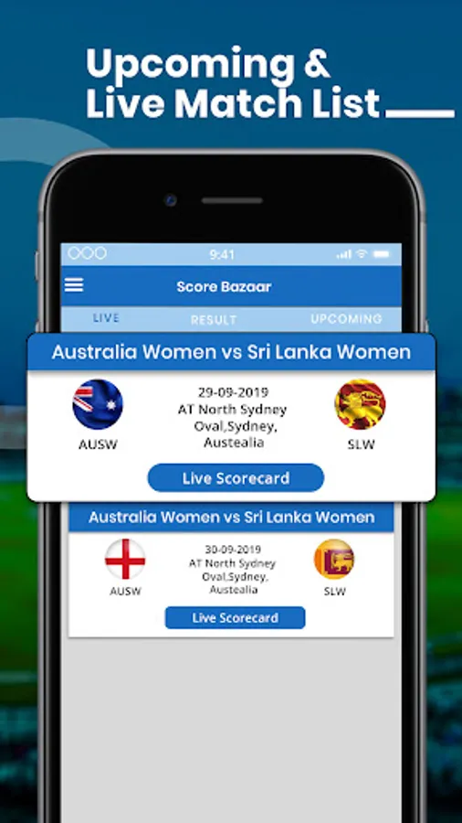It provides fastest Live score and updates from T20 , T10, T20 leagues like IPL, BBL, CPL, BPL, ODI, Test, and other domestic and women’s cricket matches.