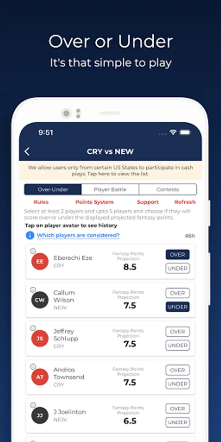 SportsBattle: The new fantasy sports app with easy to play game formats. Over-Under, Player-Battle & Daily contests