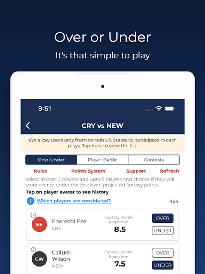 Say hello to new fantasy sports destination to play fantasy cricket, soccer and basketball for real money. With a suite of games including over-under, player-battle & daily contests, you'll never need to play anywhere else again.