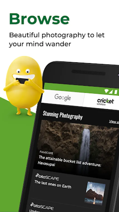 Try swiping to the screen to the LEFT of your home screen, and check out the "Cricket Partner Tab" where you can find a selection of beautiful photography, the latest headlines and fun videos collected just for your short mental breaks.