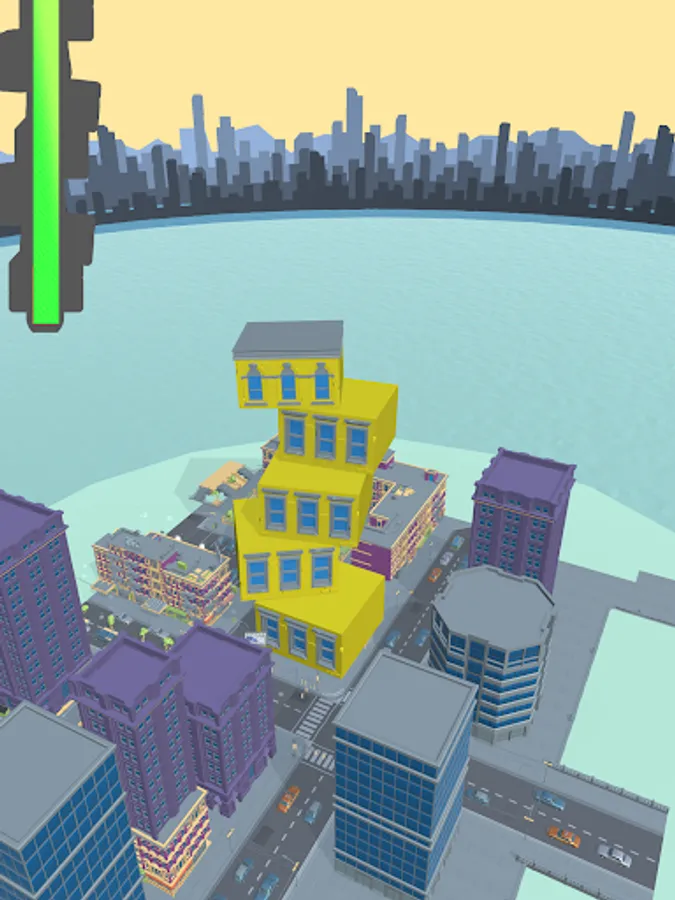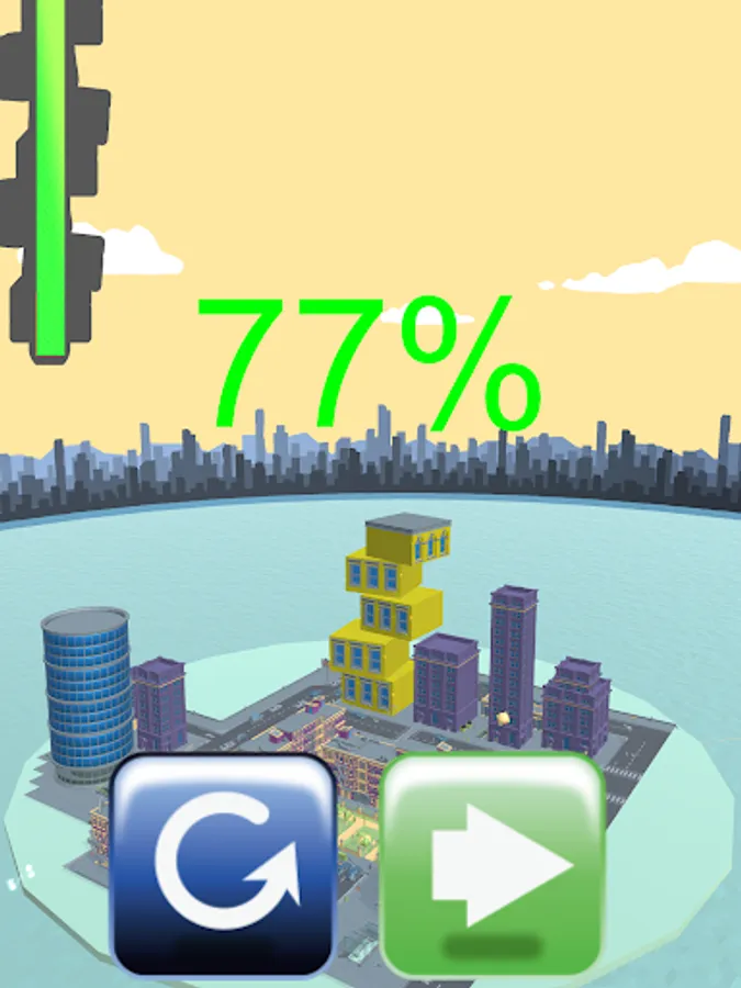 Build new skyscrapers in your city by stacking blocks that fall from the sky. Drag to move the stage, rotate it, and stack the same blocks on top of each other. The speed of the falling blocks changes as the stage progresses.