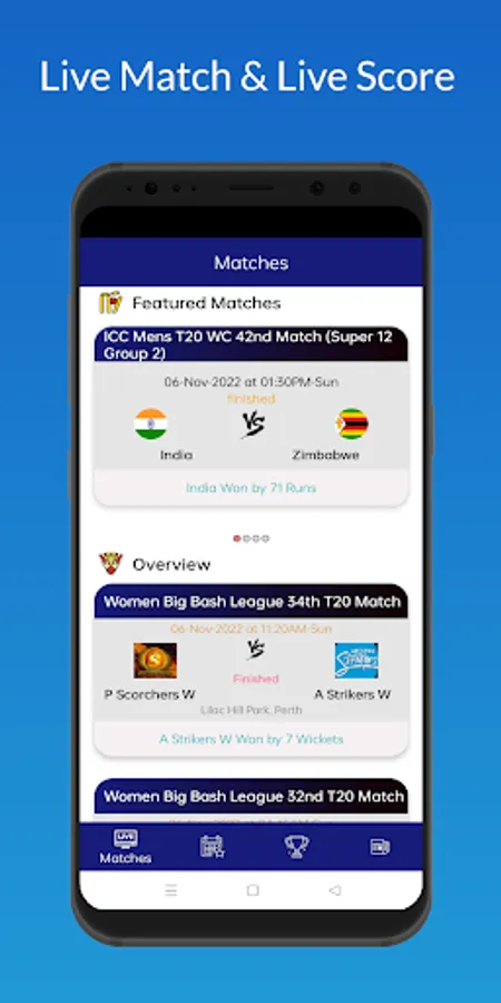 ⚡️ CricRun Live is committed to provide you the fastest Live Cricket Score updates of every cricket matches along with: