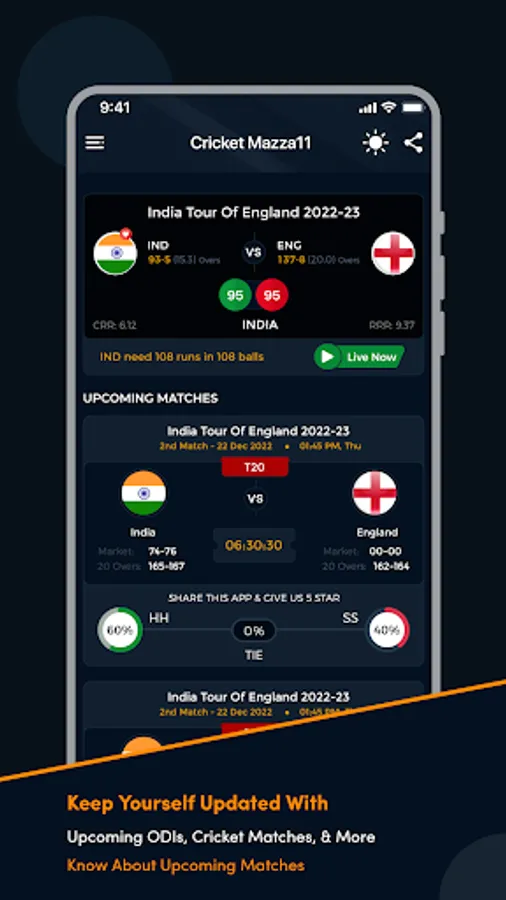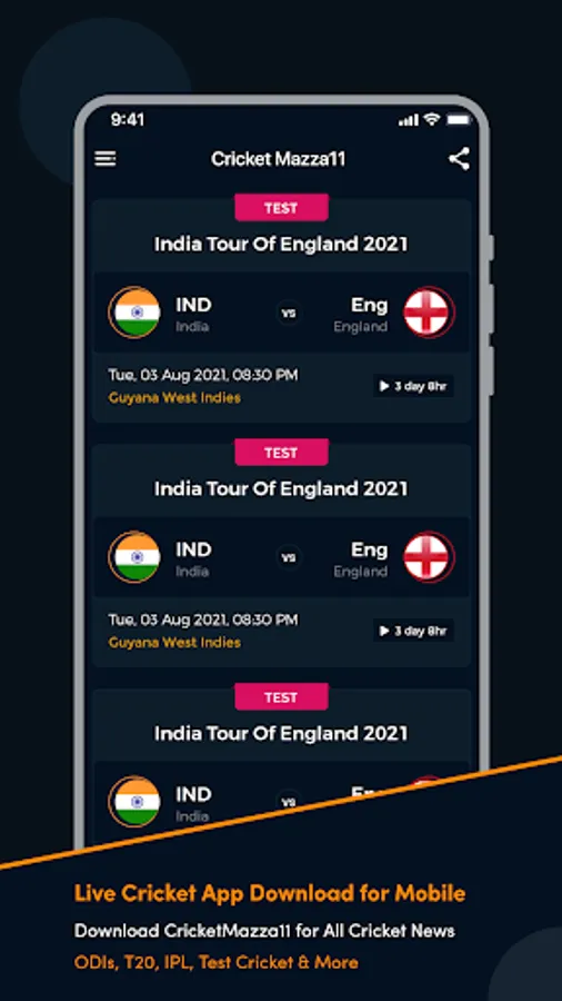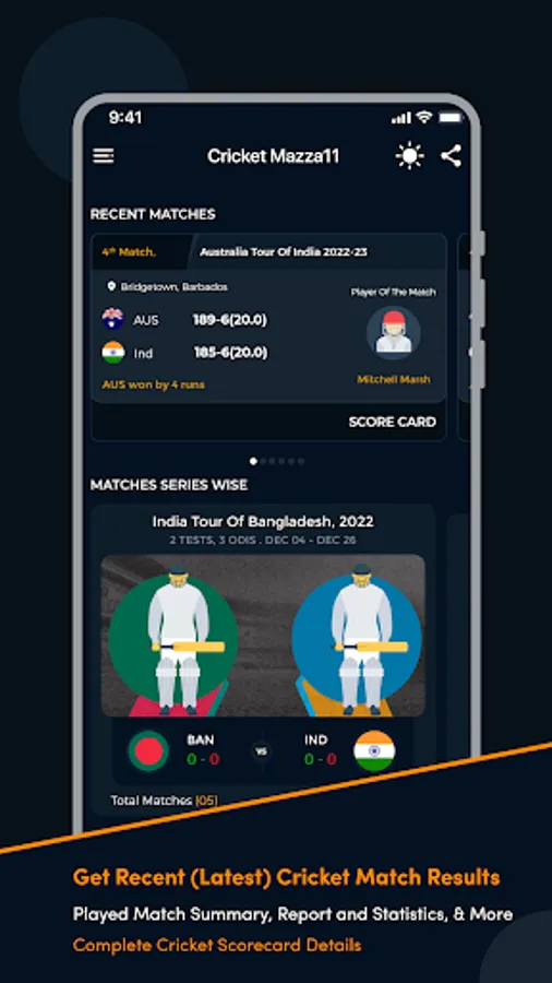 Download Cricket Mazza 11 the fastest live cricket score app liked by millions of cricket lovers. It has great features that distinguish it from other applications. The ease to use and the quick navigation make the CricketMazza11 one of the best live cricket score app online.