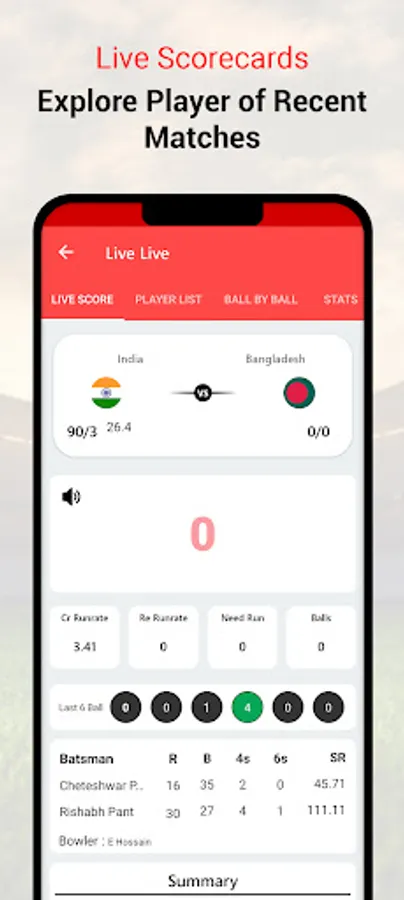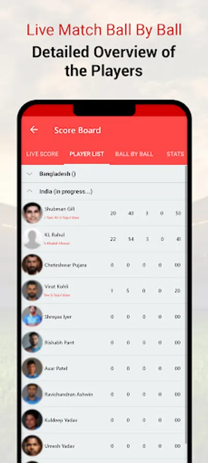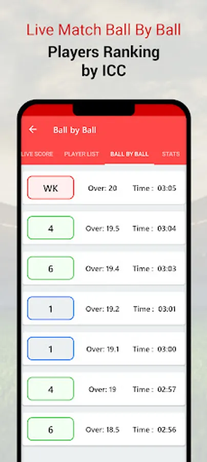 This app provides in-depth analysis of the match with the points table and updates between live game such as wicket out, good score, end of innings, goal etc.