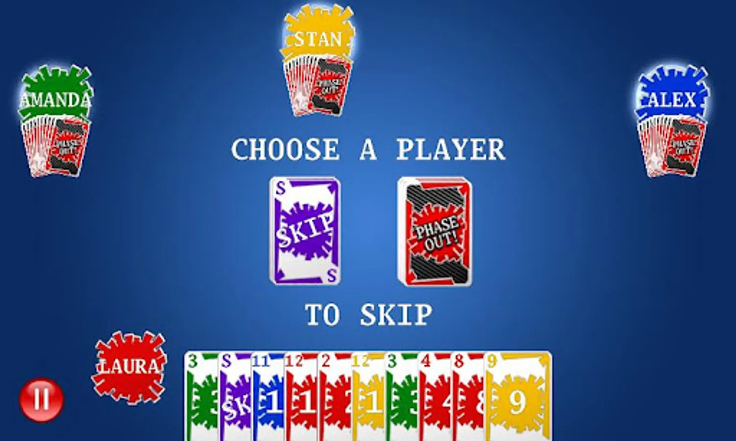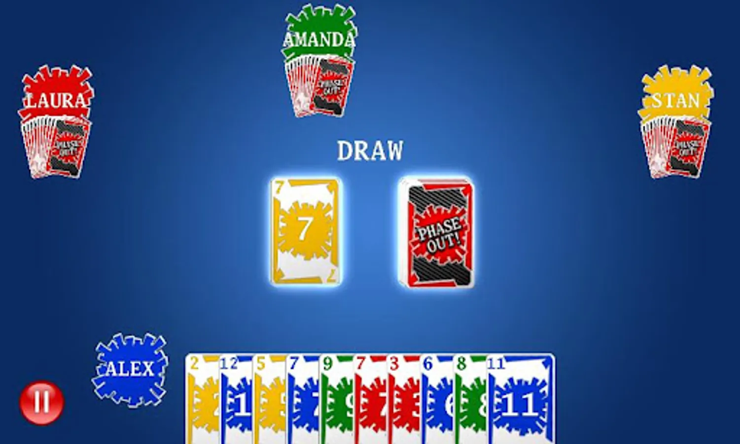 Introducing Phase Out, a social rummy-type card game for Android! Based on shanghai rummy, Phase Out features the fun-filled strategic gameplay popularized by other commercial rummy adaptations like Phase 10. Make your way through various stages, satisfying unique requirements for each stage to progress. Be the first player to complete all of their stages to phase out your opponents and become the winner!