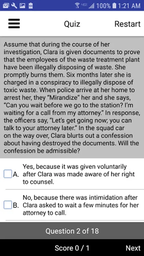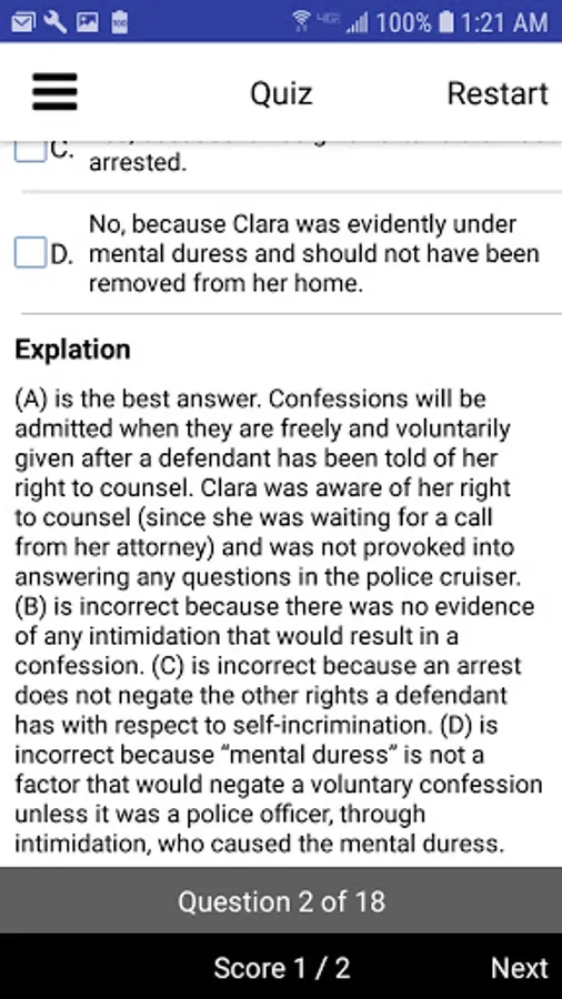- 18 MBE-style multiple-choice practice questions with scoring and detailed explanatory answers. Test at your own pace and return to where you left off or reset the test to start from the beginning