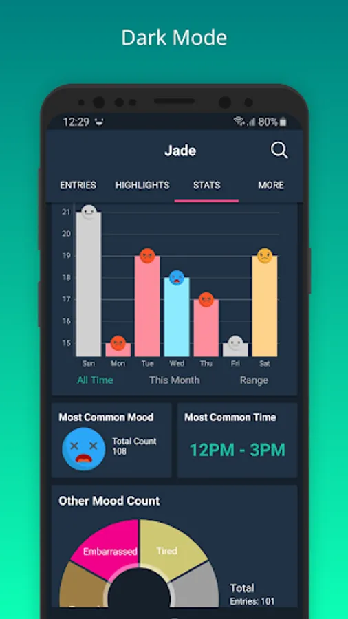 Select your mood, add location if you want, your thoughts and save it in the app so that you can view them later. You can also type notes and save them in Jade. Jade will then analyze all your entries and give you a detailed statistics so that you know how your day goes. Keep track of your mood, thoughts, ideas throughout the day and use this to improve your life and be more productive.