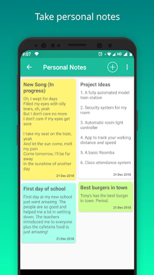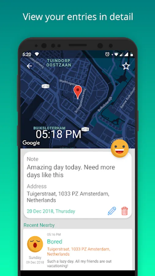 Jade can also set reminders so that you never forget to make an entry. You can easily backup and restore all the entries, notes and thoughts in Jade anytime and restore them anywhere you want. So you do not have to worry about losing data whn buying a new phone.